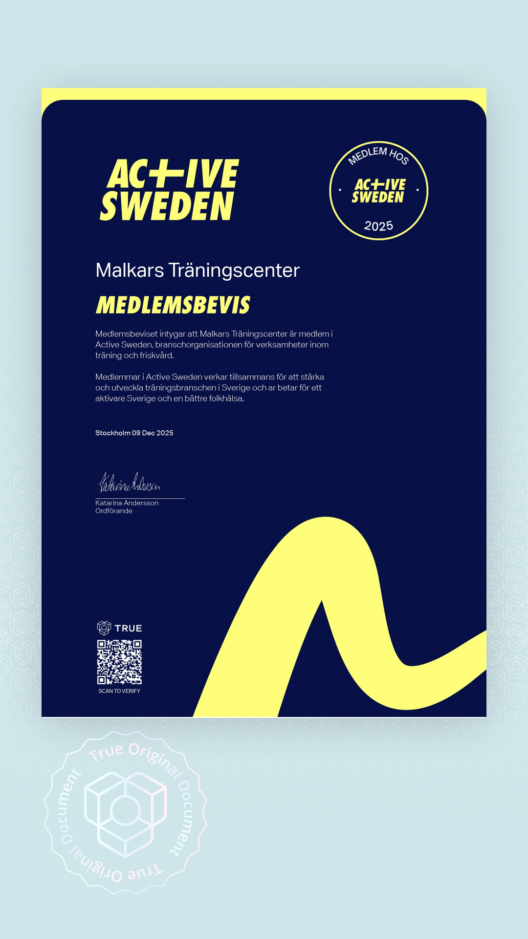 Alla TRUE -document är säkrade med blockchain-teknologi och kan verifieras som äkta. Klicka på verifieringsknappen bredvid dokumentet eller skanna QR-koden med din smartphones kamera. Ingen app krävs - dokumentets äkthet verifieras omedelbart.